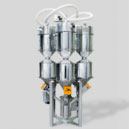 GRAVIBLEND can be used for flow rates from 0.2 to 1200 dm³/h (at a bulk density of 0.5 kg/dm³) per station and for free-flowing plastic granules with product temperatures up to max. 180 °C. (Observe design guidelines) The typical maximum flow rate of 1500 kg/h per line should not be exceeded. GRAVIBLEND models are available with max. 4 or 8 dosing stations.